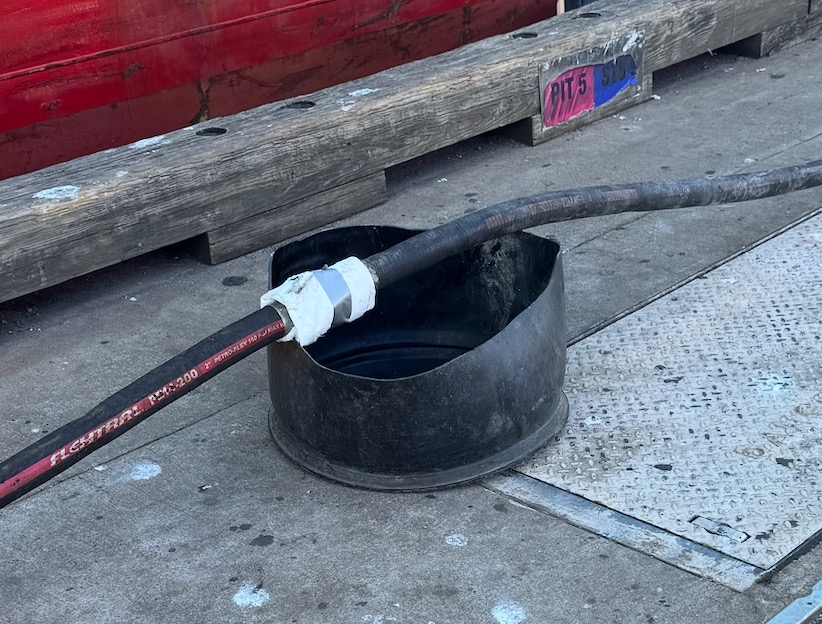 - Assess alternative mitigation measures. If the crew must use a segmented hose, additional safeguards should be implemented, such as secondary containment, absorbent booms, or additional securing measures for the connection point to minimize movement and potential failure.